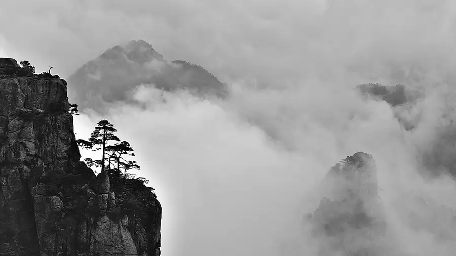 Huangshan mountain pine in fog